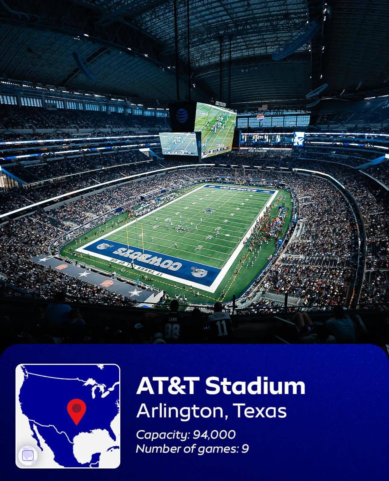 ATT Stadium (阿灵顿,德克萨斯州,美国): 这座位于德克萨斯州阿灵顿的球场,拥有高达94,000人的惊人容量,是所有场馆中当之无愧的“容量之王”。它将承办9场比赛,成为本届世界杯承办场次最多的场馆。其最大的亮点莫过于那块标志性的巨大中央高清屏幕,以及可伸缩屋顶,后者确保了无论天气如何变化,比赛都能如期进行。