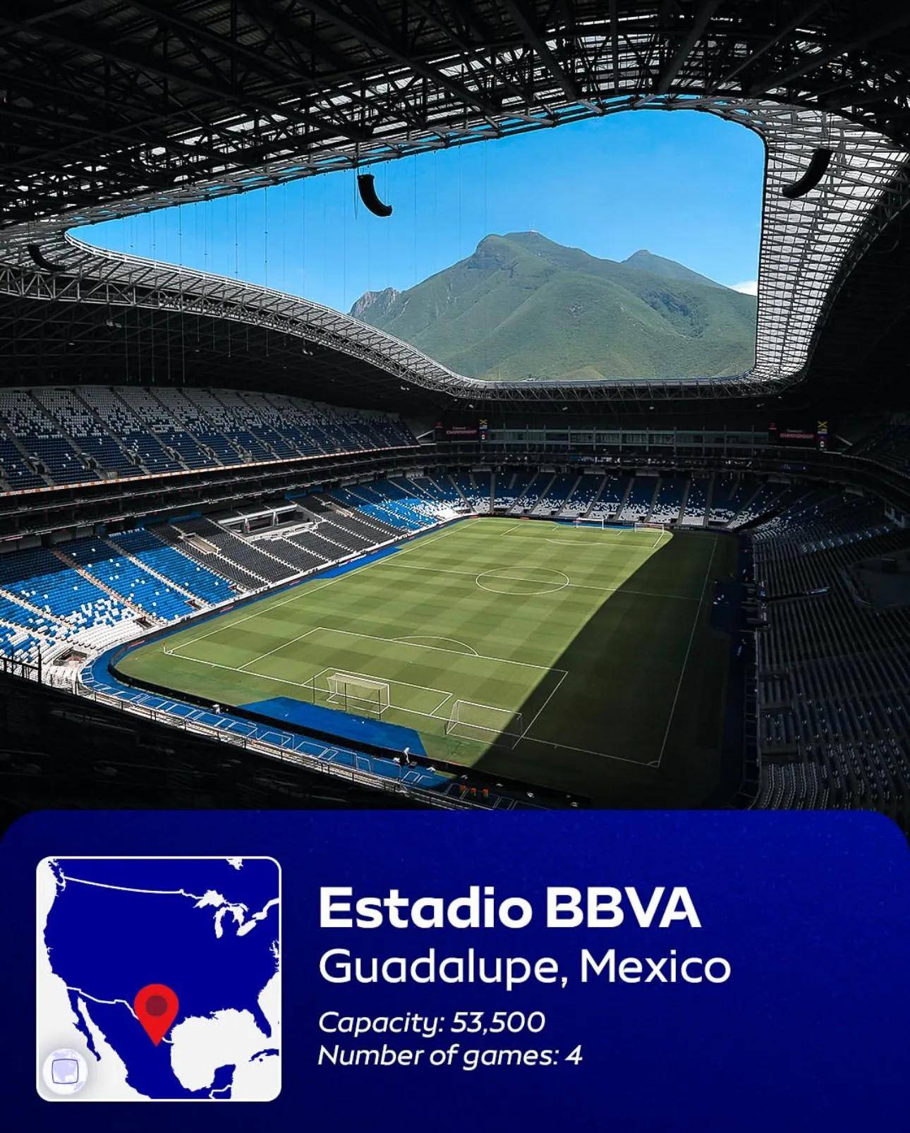 Estadio BBVA (瓜达卢佩,墨西哥): 这座相对较新的现代化球场,其独特之处在于其开放的“鸟巢”屋顶设计,从场内可以看到壮丽的山景,设计感十足,拥有53,500个座位,将举办4场比赛。