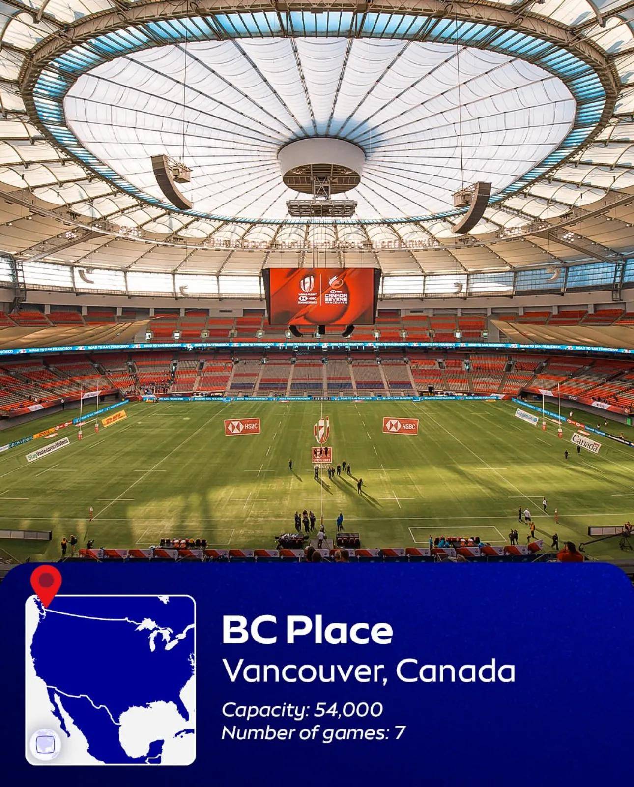 BC Place (温哥华,加拿大): 作为加拿大的主要赛场之一,BC Place拥有一个独特的可伸缩圆顶屋顶,提供了全天候的比赛条件,拥有54,000个座位,将承办7场比赛。