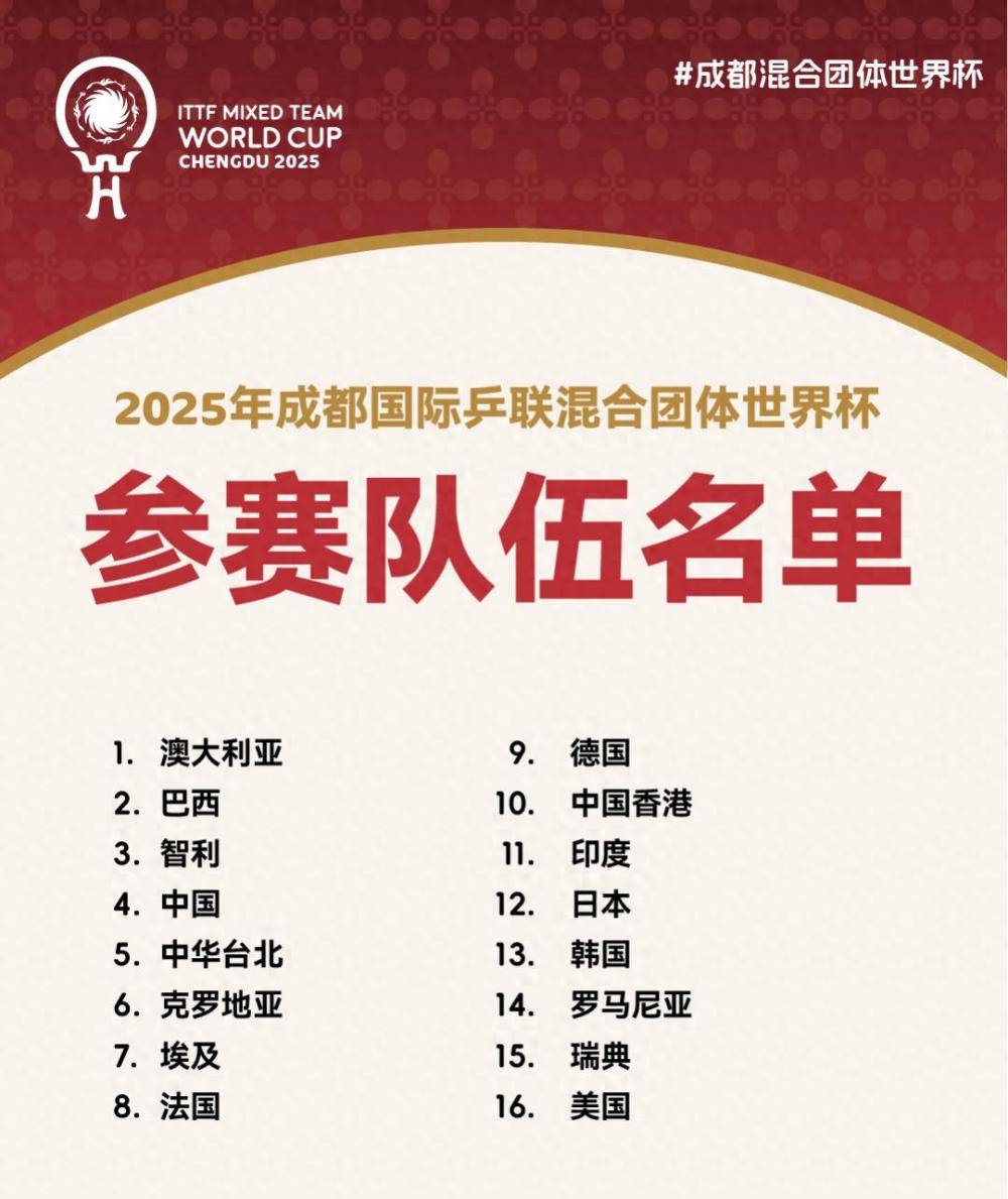 十个月后的今天,国际乒联正式公布了2025年成都混合团体世界杯的16支参赛队伍名单,这场定于11月30日至12月7日举行的赛事,已经因为一系列规则变革而充满悬念。