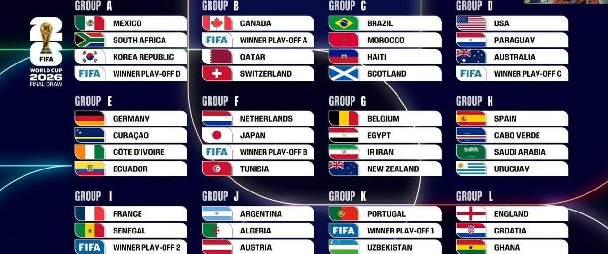 在抽签仪式开始前,现场还进行了歌舞表演和相关奖项的颁发活动,整个流程盛大而隆重。 最终的完整分组名单以清晰的图表形式向全球观众展示。