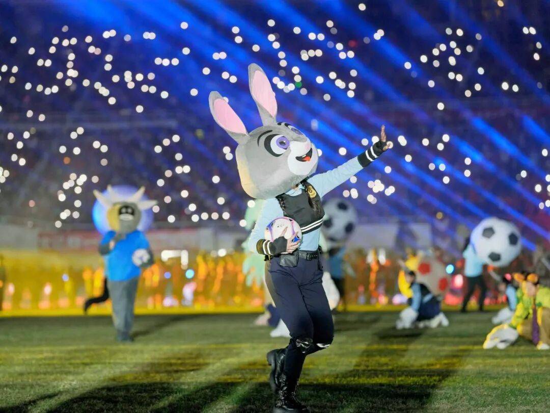 开场在《足球乐园》昂扬欢快的主题音乐中拉开序幕。熟悉的节奏瞬间点燃全场,隐喻足球世界如动物城一般,充满活力、包容与意想不到的精彩,迅速将观众带入热烈欢腾的氛围之中。