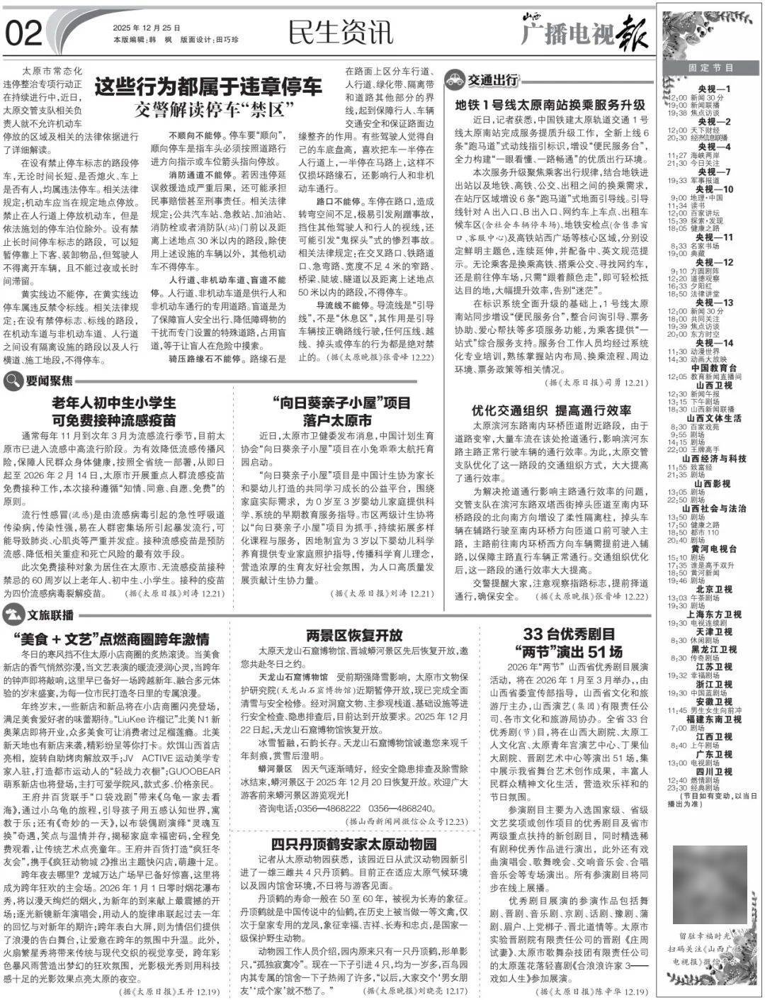 通常每年11月到次年3月为流感流行季节,目前太原市已进入流感中高流行阶段。为有效降低流感传播风险,保障人民群众身体健康,按照全省统一部署,从即日起至2026年2月14日,太原市开展重点人群流感疫苗免费接种工作,本次接种遵循“知情、同意、自愿、免费”的原则。